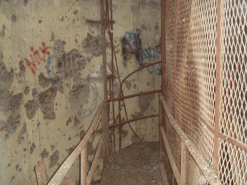 Titan I Exposed At 5am I rose very reluctantly and proceeded to gulp coffee wherever I could find it. My fatigue rapidly gave way to the feverish mania of one possessed of missiles and their history. An actual complex-- a missile site-- is like a cathedral or holy ground to the devoted. How could I possibly be tired while visiting a sacred shrine to the Titan I? It was impossible! Resonating with a new energy, I went about my morning routine swiftly and with great purpose, meeting Walter outside my cut-rate motel, fresh and ready for action, no matter what might confront me. With a cache of chocolate donuts we hit the road heading west, talking excitedly of missiles and mayhem, of launch failures and silo explosions, of cold war bunkers and communications installations. Outside Walter's rental car the scenery vied ever harder for our attention as the ground rose up in hills and mountains and a huge and majestic lake appeared. I forget the lake's name though Walter told me what it was. I fumbled for my camera missing all but the worst views of a breath-taking scene observed through an insect-spattered windshield. We arrived at some greasy-spoon diner-- Ruby's I think it was, located just outside of the agriculturally dominated and economically depressed Royal City, Washington. Groves of almonds and fields of grape vines blanketed the landscape. It was at the diner our liaisons from Undersea Adventures were to meet us. The time was just before 7am so we were a bit early and encroached on the margin of Royal City to get provisions from a convenience store: more coffee, water, salt-encrusted chips and a pony keg's worth of soda. All that and the leftover donuts would have to sustain us for far longer than I would have guessed. We headed back to Ruby's and after a few minutes three men appeared. Our hosts? We waited a few minutes until I spied the tell-tale red-and-white diver down flag on their vehicle which vanquished any doubt. Introductions and pleasantries were brief: Walter. Pete. You the web site guy? Yes I am. Good enough, let's roll. Epic Journey (not really) We embarked in our tiny caravan, driving from Ruby's to a spot that seemed to be about 10 yards distant from the enigmatic eatery. Literally we were just moments away and didn't realize it. How could we not have noticed? As the familiar gate came into view, so too did a lot of other scenery, which bore no resemblance to the usual flora and fauna common to sites I'd seen up close before: junk. Lots of junk-- the surface was covered, no-- inundated with a solid layer of scrap metal consisting of a surprising array (or disarray in this case) of rusting machinery and obscure detritus dating back decades. Everywhere, scrap blanketed the ground in random clusters. No wonder we couldn't see the site until we were on top of it; all the junk provided effective camouflage hiding any and all distinctive landmarks. As we drove further into the junkscape I spotted a few tell-tale signs and started to get my bearings a bit. Then I noticed that the ground all around us was scarred with large holes and random excavations. Some of these holes were practically chasms going down 20 feet or more. We'd have to watch our step out there. We pulled in near the entry portal and I wasted no time getting my gear unstowed and began taking pictures. The portal doors stood open and were tethered with rusted cables and held by steel beams scavenged from the portal itself which were then welded to the doors to keep them open. Despite all that and a railing over one end to prevent falls, the opposite side was WIDE OPEN. Watch your step folks! As everyone was getting unpacked and ready, I scurried about (yes, I scurried) trying to photograph as much as possible. Each site can be so different and have such a varied history, it is important to me to document as much about it and its condition as I can and I have learned not to trust my memory one damn bit. Looking around the site I noticed that large areas had been dug out near the power house and towards the launchers. Half-buried concrete was visible in places. What the hell had been going on here? We assembled on the sheer edge of a deep ravine cut into the ground overlooking the partially excavated power house exhaust structure. Down below, thick vegetation obscured the depth of the rift. What was the reason for this giant hole? After some pondering on the digging, we all agreed it was time to head below and so we returned to the entry portal where I spotted the remains of the instrument tube array. Like most of the place, it too had been assaulted. Two of the instrument tubes were missing revealing a deep hole down into the dark space below. (the 2 missing tubes would later be discovered laying at the bottom of the entry portal) Going Down! The personnel entrance was rather unnervingly propped open with a large timber of questionable integrity. Although it was monolithic, I could not help feeling a bit nervous passing underneath it. As the others descended I lagged behind haphazardly snapping away. At my feet I could see an almost inordinate number of spent shell casings (12 gauge mostly) littering the walkways. I thought as I descended: What a noise that must have made! and: Why all the gunfire in such an enclosed space? That must be horribly dangerous, so why? A solid theory would present itself only moments later. There was an absolute befouling of pigeons present in the portal silo. Everywhere you looked they were flapping about stupidly and soiling everything with their vile excrement. Stalagmites of feces were piled high on every ledge and perch, and every vertical surface was smudged with crap. I don't need to tell you the smell wasn't much to my liking either... Looking at the scarred and bullet-ridden concrete, it was pretty clear someone had been waging war on those flying rats for many years. It is a testament to their intense loathing of the birds that whoever had thrown caution to the wind to fir