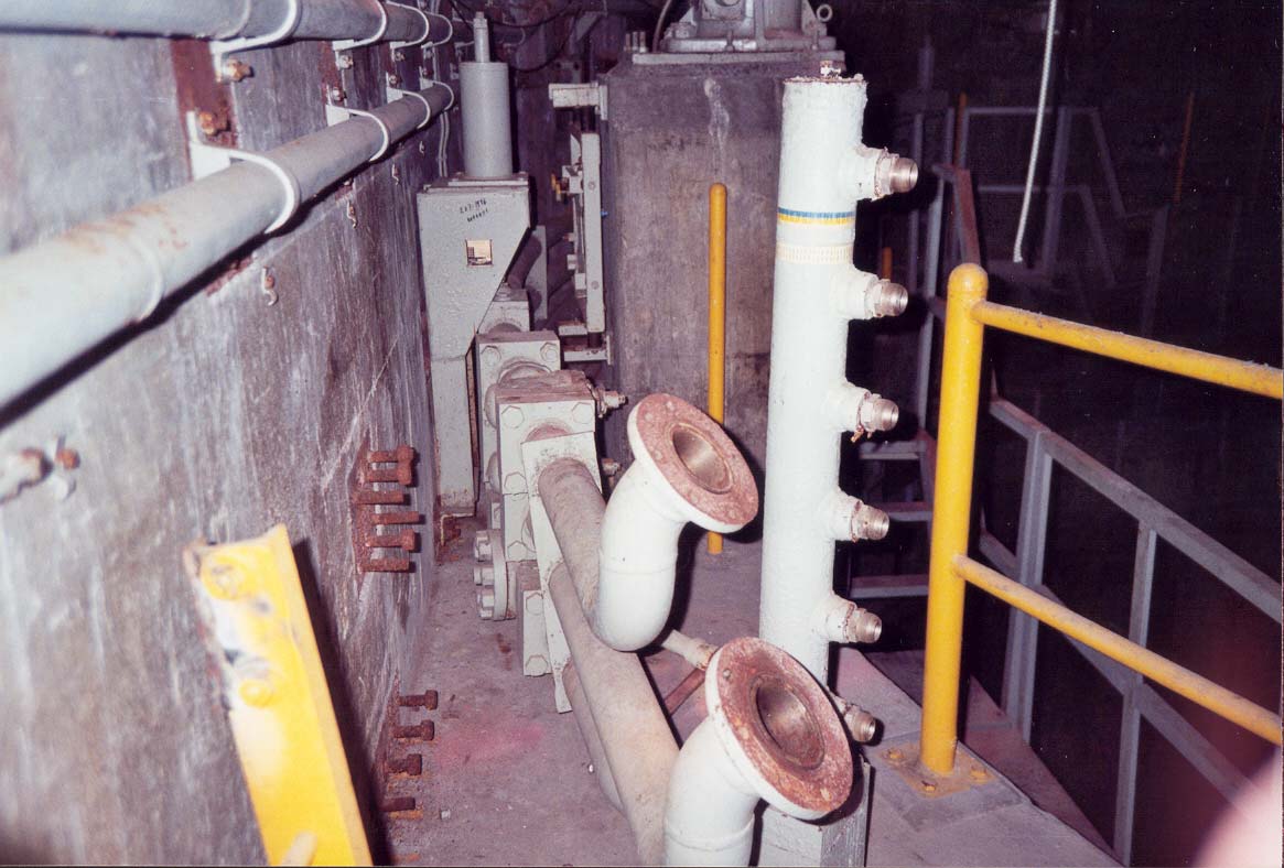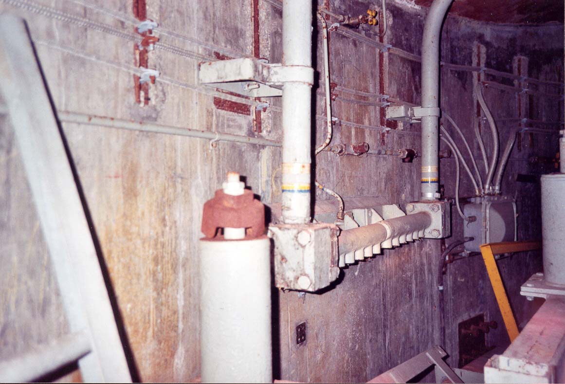 from the launcher elevator motor platform. Hydraulic lines abound,