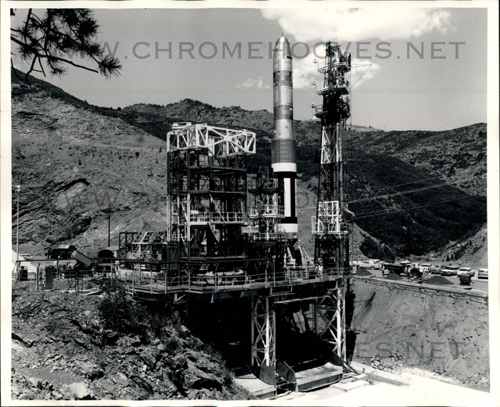 Thought to be Captive Firing Stand 2 in operational status-- one of four captive firing stands at the Martin Denver facility. Taken: April 1959. Source: Martin Co.