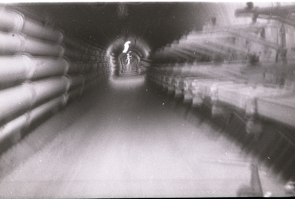 Unknown squadron and site undergoing salvage operations. Presumed to be taken in the early 1970's, this photo shows a partially salvaged (though not discernible in this photo) antenna tunnel looking toward the antenna terminal. The camera appears to have been moved during exposure, producing a badly blurred photo. Please contact me at chromehooves@hotmail.com if you have any information on this photo. Any help identifying this or any other photos in the archive is greatly appreciated. Taken: Unknown-- probably late 1960's to early 1970's. Source: provided courtesy of the Titan Missile Museum/Nick Halliday (http://www.titanmissilemuseum.org/)