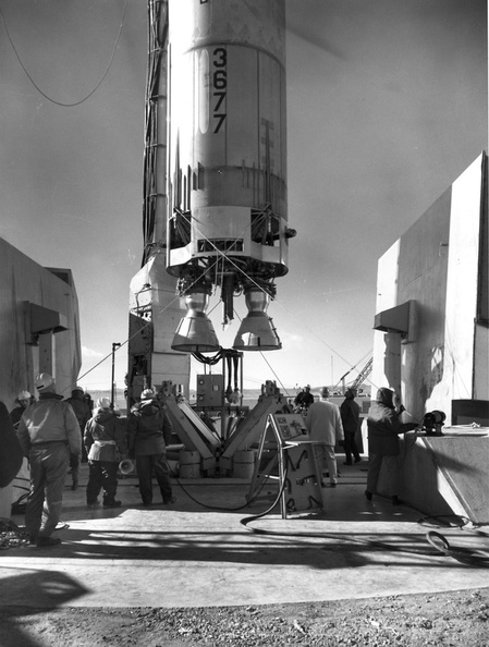 Missile installation at Ellsworth 850-A, launcher #2. First stage being moved into position for emplacement on the missile platform. Taken: circa 1963 Source: Art LeBrun